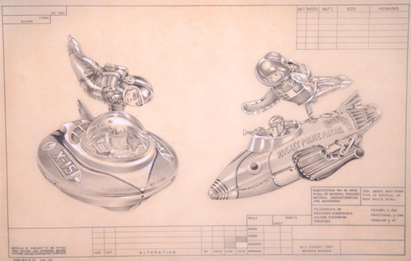 "Space Men" - Graphite & chalk on vintage Bell aircraft Vellum - 11" x 17" (21" x 26" framed)