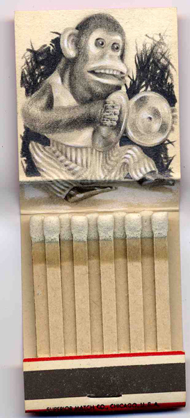 "Monkey" - Graphite on Vintage Matchbooks - 2" x 1.5" (13" x 11" framed)