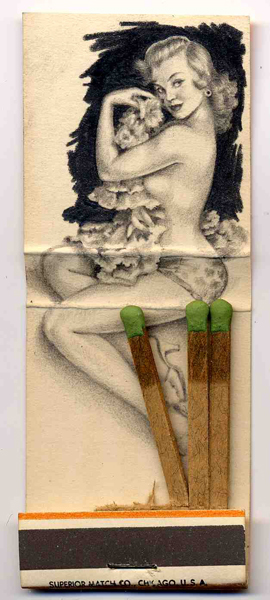 Pinup #1 - Graphite on Vintage Matchbooks - 2" x 1.5" (13" x 11" framed) sold
