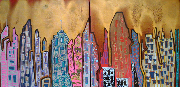 Alice Mizrachi - The Land of AM - Mixed Media on Canvas - 24" x 12"