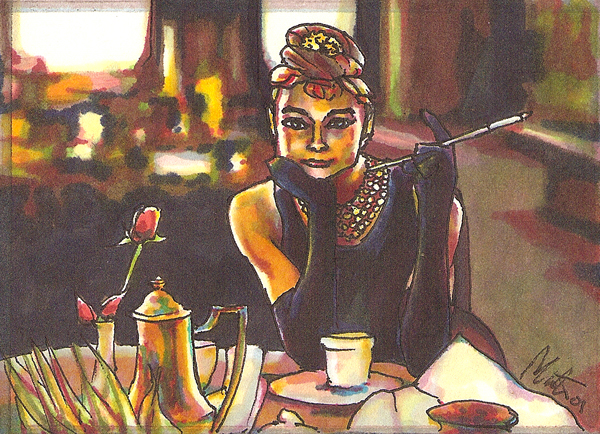 ArtCard- Audrey Hepburn sold wood frame, marker drawing, printed on cardstock 8” x 6”