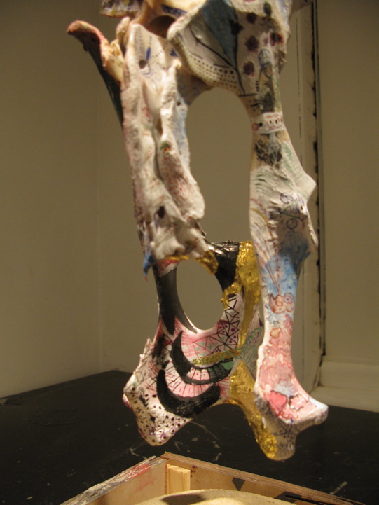 - Watercolor on bone w/ gold leaf, box of sand - 12"x30"x12" |