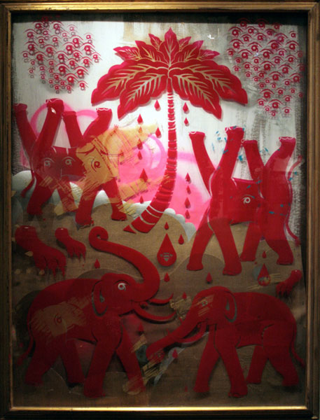 Elephants Are Good Luck-acrylic on glass with college on panel-42"x32"