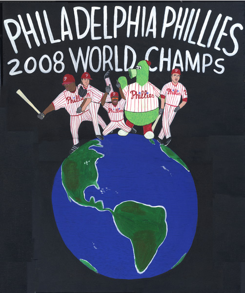 Thom Lessner - PHILADELPHIA PHILLIES 2008 WORLD CHAMPS - acrylic on wood - 18" X 15"