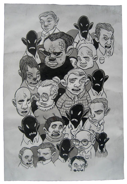 Travis Millard - Friends - Ink on paper - 31.5" x 46.5"