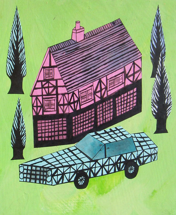 Marcus Oakley - Mock Tudor - Paint + collage - 12" x 9"