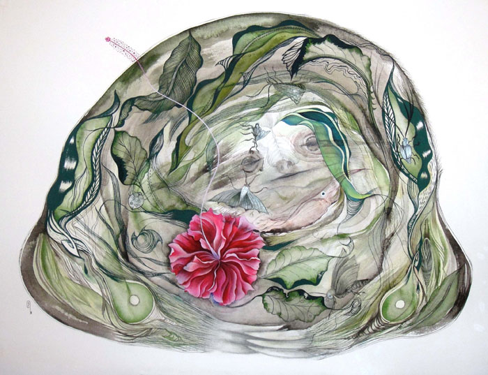 Yuri Shimojo - Sloth Dharma gansai - gouache and graphite on paper - 22 1/2" X 30"