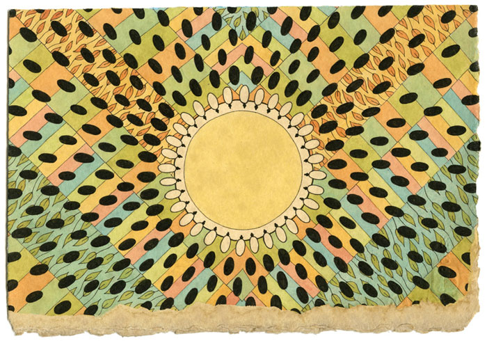 Mel Kadel - WINDSHIELD SUN - Pen, Ink, Coffee, on paper - 6.25" x 9"