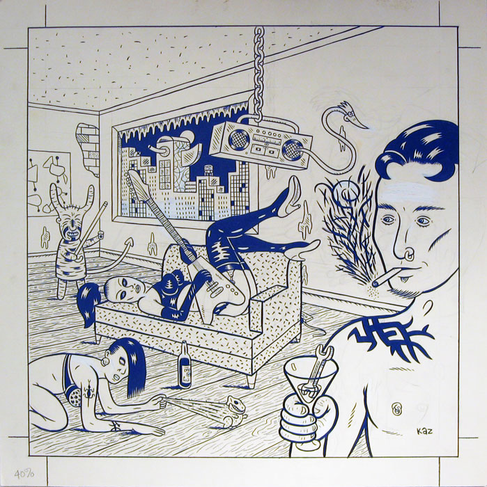 Kaz Prapoulenis - On the Rocks - Ink and paint on paper - sold