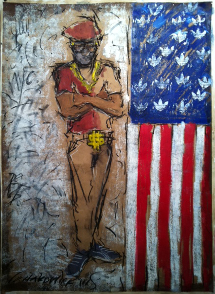 Charles Hardwick - Starz and Barz - Oil Stick on Brown Paper - 38 x 27