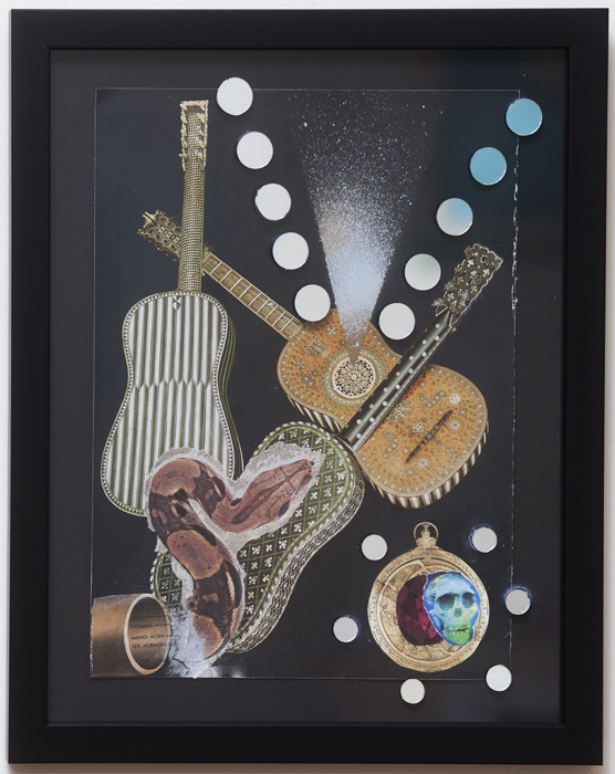Josh Sachs - Don’t Fret - paper, foil, plastic, glue, acrylic paint, die cut mirrors - 8.5 x 11