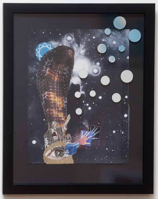 Josh Sachs - Serpentine Apparition - paper, foil, plastic, glue, acrylic paint, die cut mirrors - 8.5 x 11