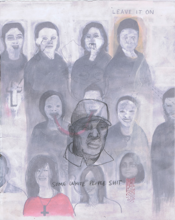 Brian DeRan - White Faces (Chuck D Remix) - Gouache, ink, graphite, paper - 10" x 10" |