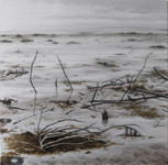 Lisa Lebofsky Sibling Similarities- Bodies Floating Ashore Oil on aluminum 6" x 6" |