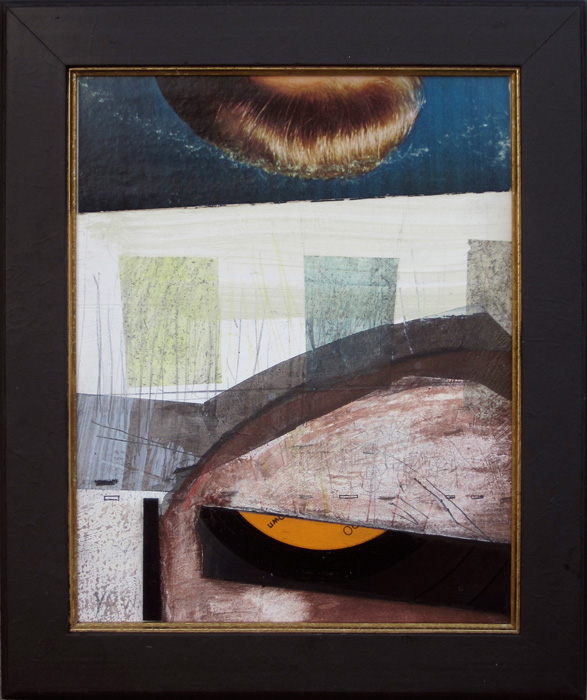 David Yow - Self Portrait as Porter Wagner - Acrylic, mixed media, record vinyl, beard hair, collage - 14.75" x 12.25" |