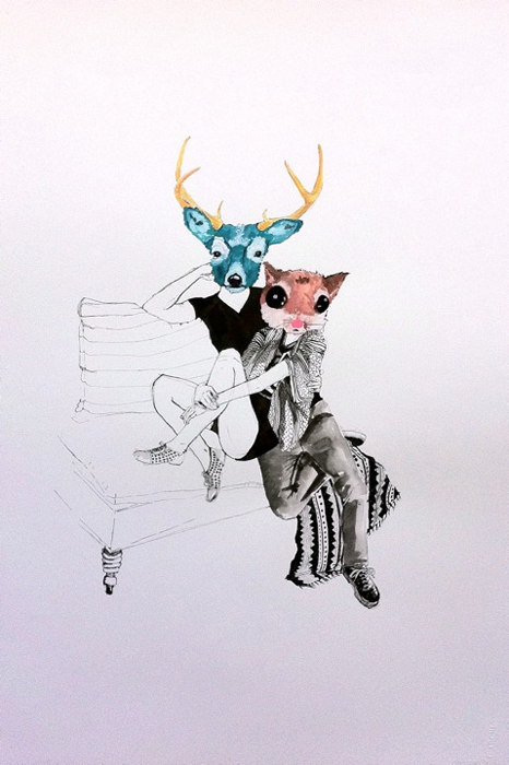 Actaeon and Artemis - Gouache and Blak Sumi Ink on Watercolor Paper - 18 x 25.75 - sold