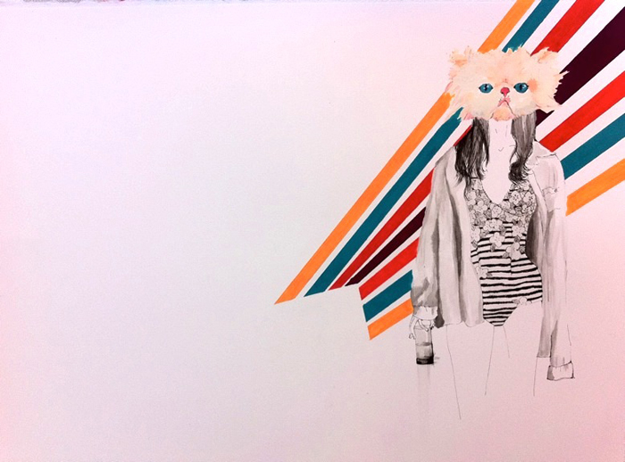 Cat Woman - Gouache and Blak Sumi Ink on Watercolor Paper - 14.5 x 18 - sold