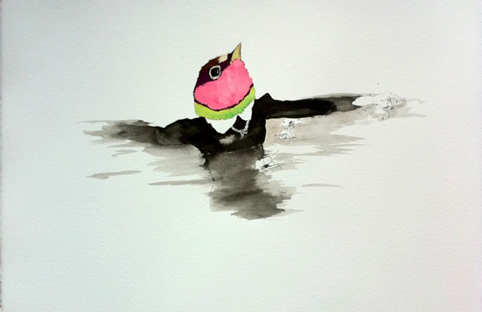 Ophelia - Gouache and Blak Sumi Ink on Cotton Paper - 18 x .75 - sold