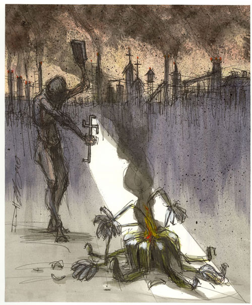 "End Timers" - pen, ink, acrylic- 9" x 7.5" |
