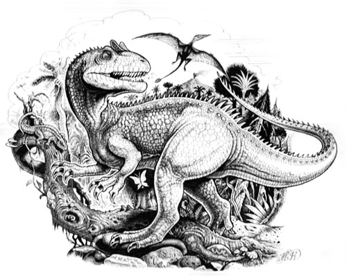 "Allosaourus" - ink on bristol - 8.5" x 10.5" |