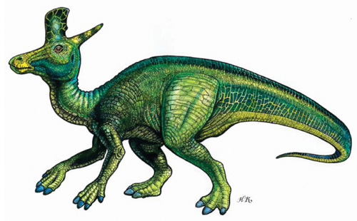"Lambeosaurus" - watercolor & ink on paper - 9" x 11.5" |