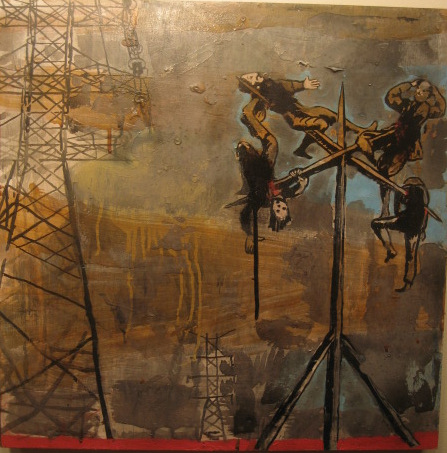 Travis Lindquist "The Four Horsemen and Falling Wormwood " - mixed media on wood - 24 " x 24 " |