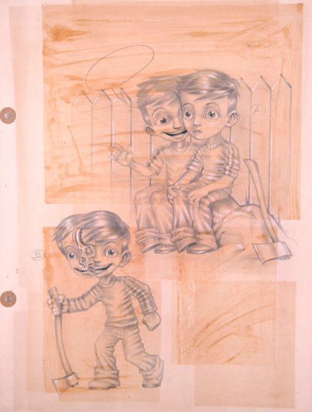 "Split" - Graphite on Antique Scrapbook Paper - 16" x 12" (26" x 21" framed)