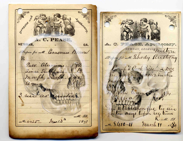 "Cause & Cure " - Graphite on 19th Century Prescription Forms - 17" x 13" framed