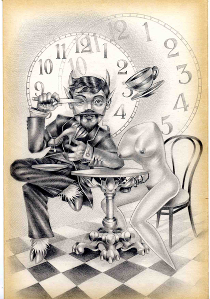 Tea - Graphite on antique paper - 12" x 8" (21" x 17" framed)