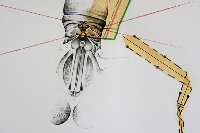 Simplicities No. 3 - (detail) Graphite and sewing pattern on Coventry Rag Dimensions (of paper): 44 x 30, Dimensions (framed): 49 x 35