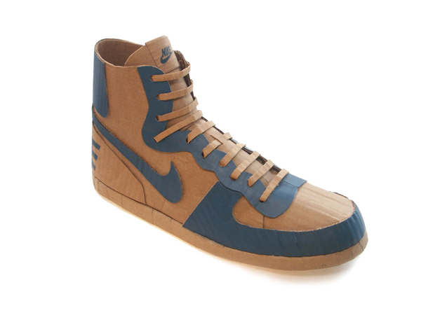 Nike Terminator sold recycled cardboard & paper bag, glue, staples, acrylic paint 16” x 6” x 11”