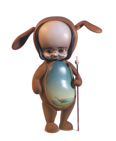 Mark Ryden 9 movable parts w/ cedar wood, acrylic paint, mixed media 40” x 12” x 10” (overall, with pedestal)