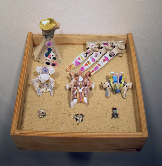 watercolor on bone w/ gold leaf - 7"x 10"x 9.5"