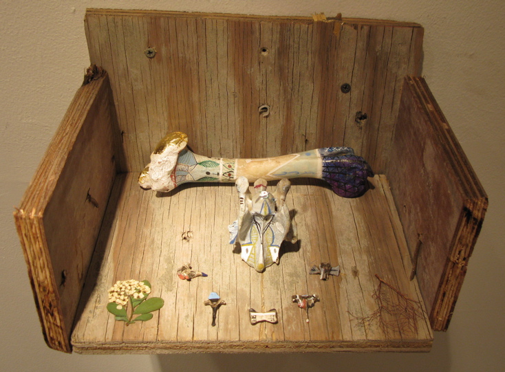 watercolor on bone w/ gold leaf - 6.75"x 8x 10.5"
