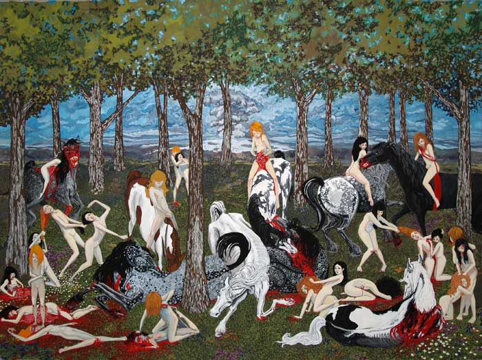Bonnie DeWitt - Horse Massacre - gouache on paper - 18 x 24 |