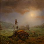 Catherine Howe Night Painting with Mysterious Figure oil on canvas 20 x 16 |