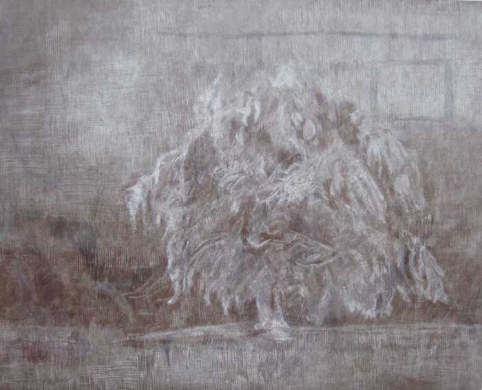 Viviane Silvera - Snow Tree -oil stick and white charcoal on masonite board -16 x 12 |