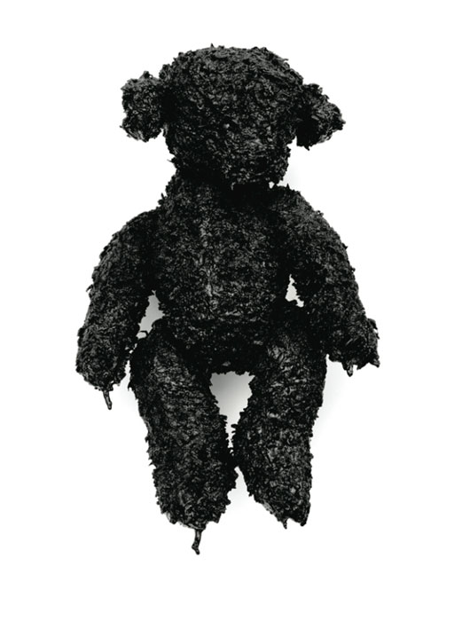 Matt Campbell - Blackened Teddy - Cotton and Acryl enamel magnetically mounted on lacquered wood - 14” x 19”