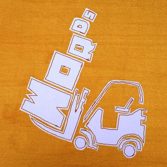 Half pipe with Broom - Gold acrylic & thread on gessoed canvas - 10" x 10”
