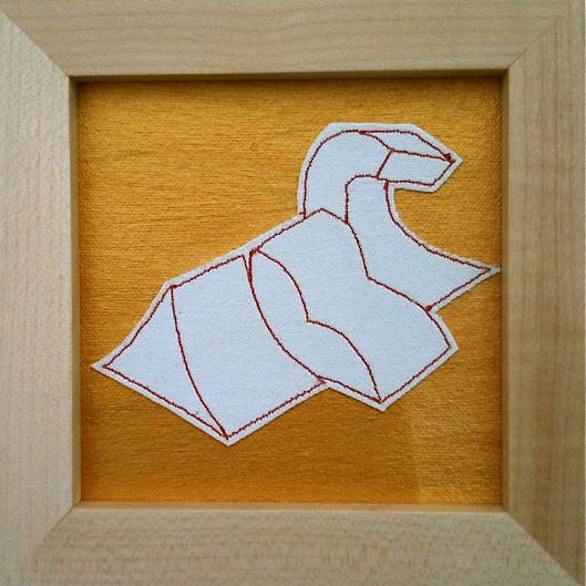 ABC small - Gold acrylic & thread on gessoed canvas - 4" x 4”