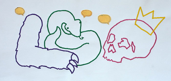 Louie, Sam and Derby - Thread on gessoed canvas - 10" x 20” - sold