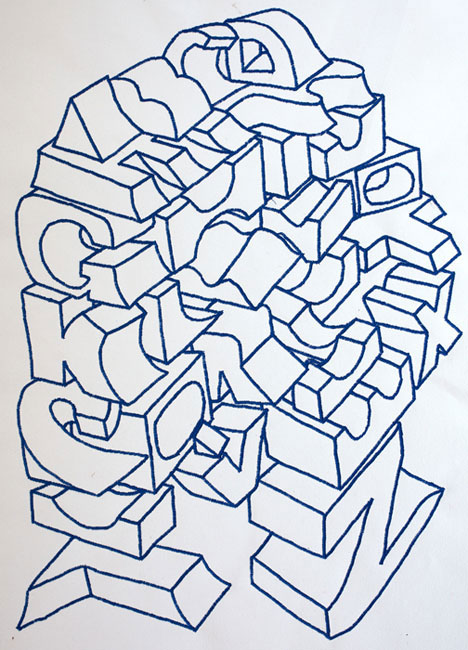 Stacked Skate Ramps- Thread on gessoed canvas - 19"x 27”
