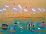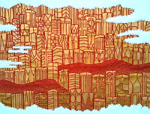 Cityscape with Clouds Gold acrylic & thread on gessoed canvas 21.5" x 28.5” |