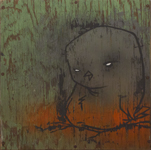 | Harry Druzd Untitled Woodburning, Acrylic on Plywood 11.5 x 9.5 |