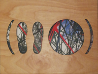 Bast Collage (Visor) Paint on Paper 7 x 7 |