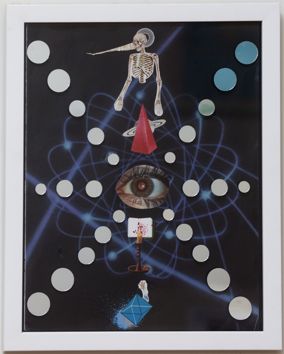 Josh Sachs - Auditory Vortex - paper, foil, plastic, glue, acrylic paint, die cut mirrors - 8.5 x 11
