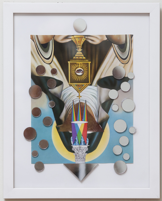 Josh Sachs - Mother Tongue - paper, foil, plastic, glue, acrylic paint, die cut mirrors - 8.5 x 11