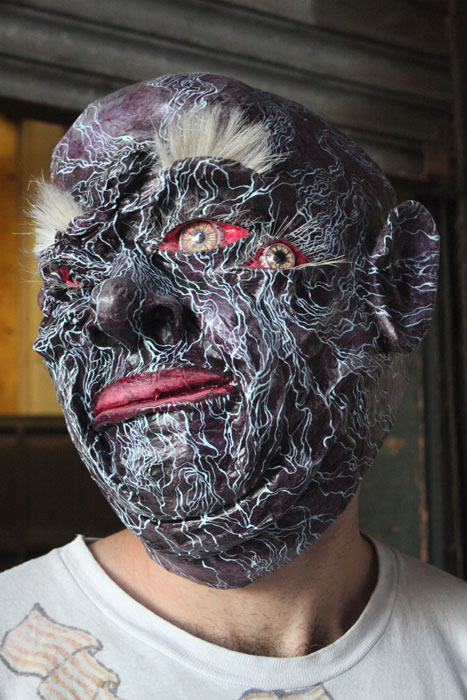 Bureaucrat-Dimensions Variable-Paper, tape, acrylic paint, plastic domes, hair |
