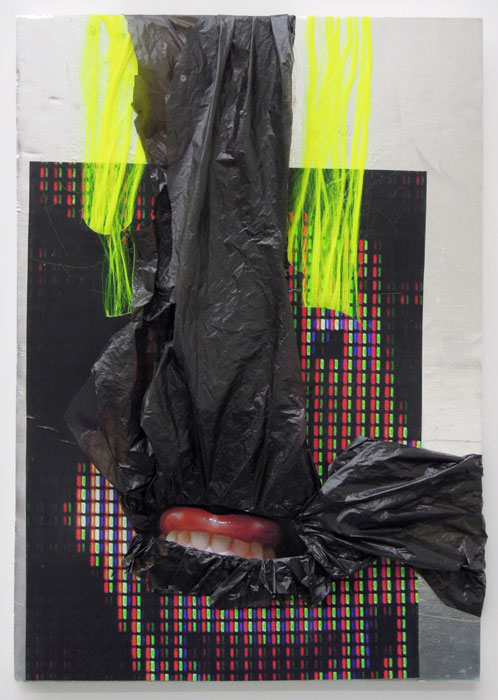 oil painted mouth on aluminum, mixed media
