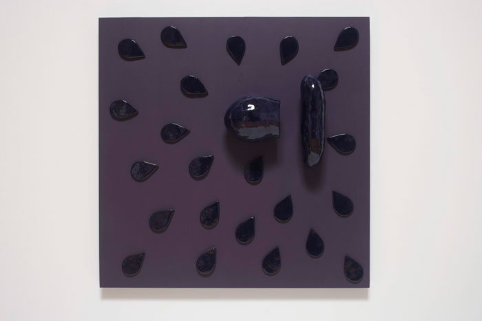 glazed ceramic, acrylic, wood panel